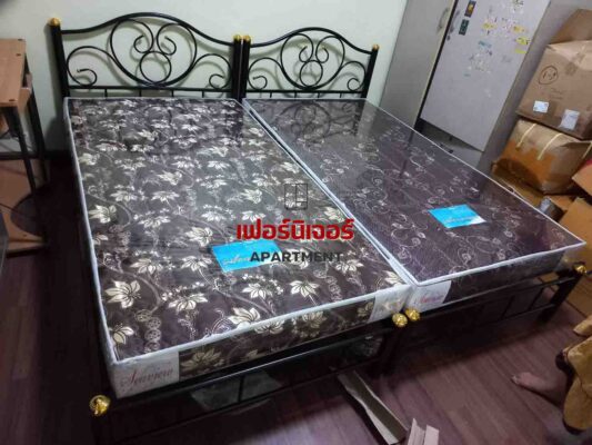 จัดส่ง เตียงเวนิส ที่นอนหุ้มหนัง ตู้เสื้อผ้า โต๊ะเครื่องแป้ง จัดส่งเตียง 2 ชั้น เพาเวอร์ เตียงเหล็ก 3.5 ฟุต